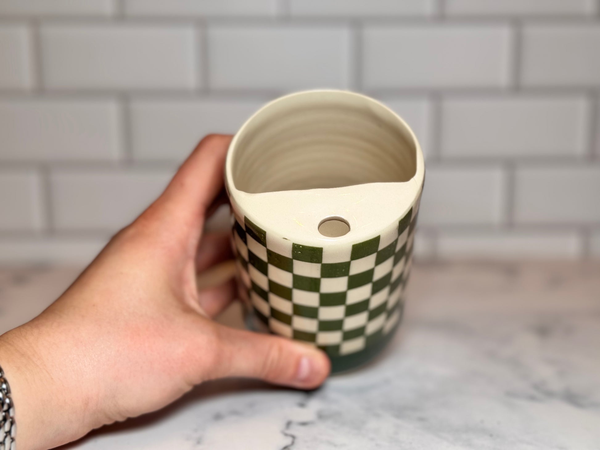 Our To-GO Cup showcases unique hand-painted patterns inspired by Checkered themes, providing a fashionable and one-of-a-kind way to savor your drinks. Crafted with care for long-lasting use, this tumbler makes a valuable and enduring addition to your collection.