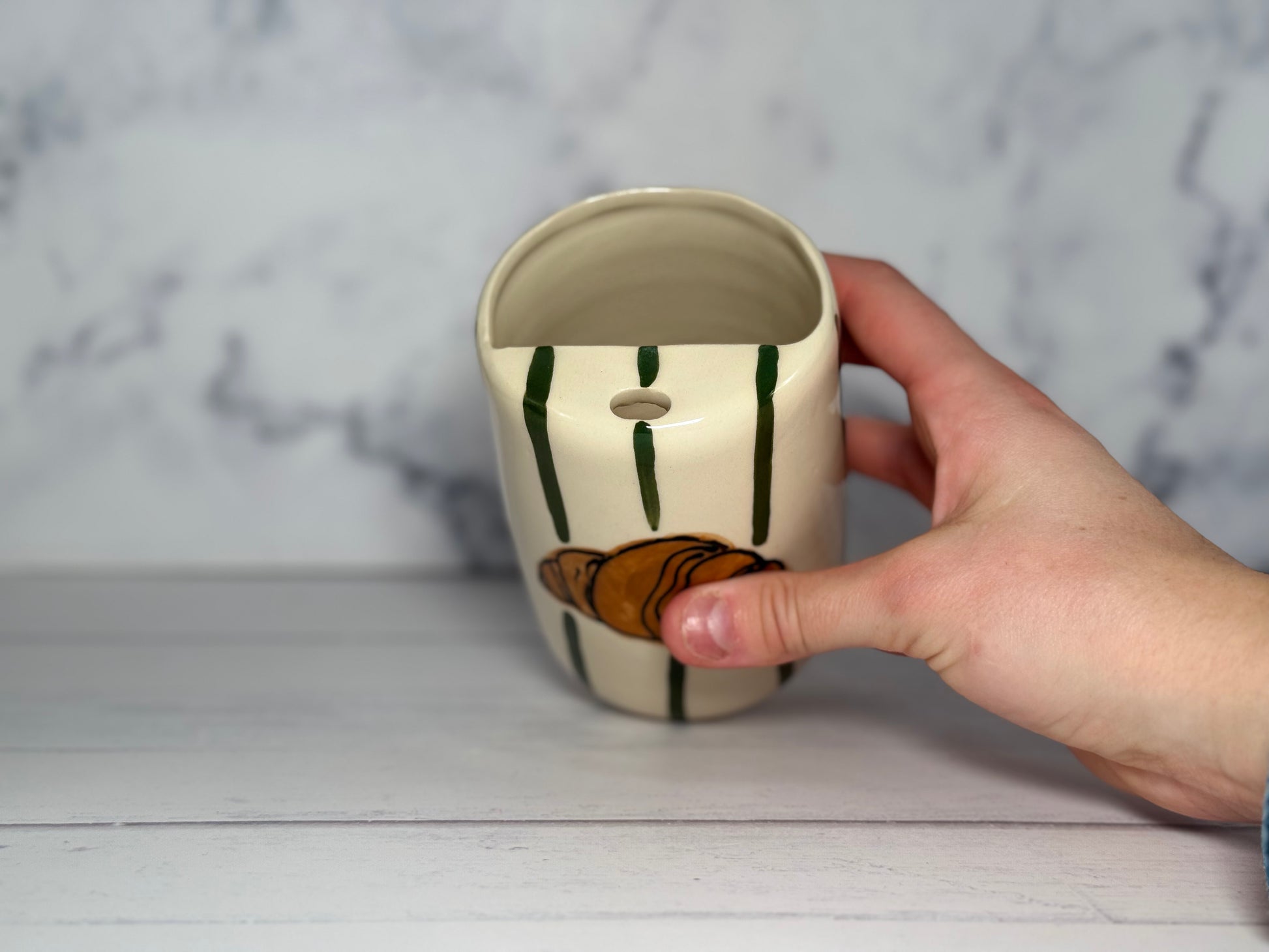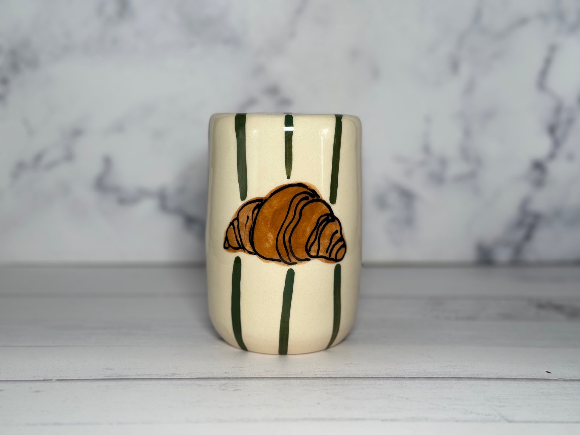 Our To-Go Tumbler Cup (~12oz) features distinctive hand-painted designs inspired by coffee culture, offering a stylish and unique way to enjoy your favorite beverages. Carefully crafted for durability, this tumbler is a lasting and meaningful addition to your collection.
